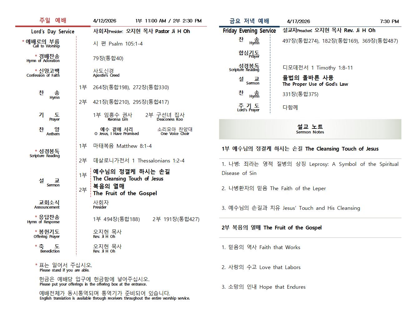 ÁÖÀÏ ¿¹¹è 2ºÎ ÁÖÀÏ ¿ÀÈÄ 2:30