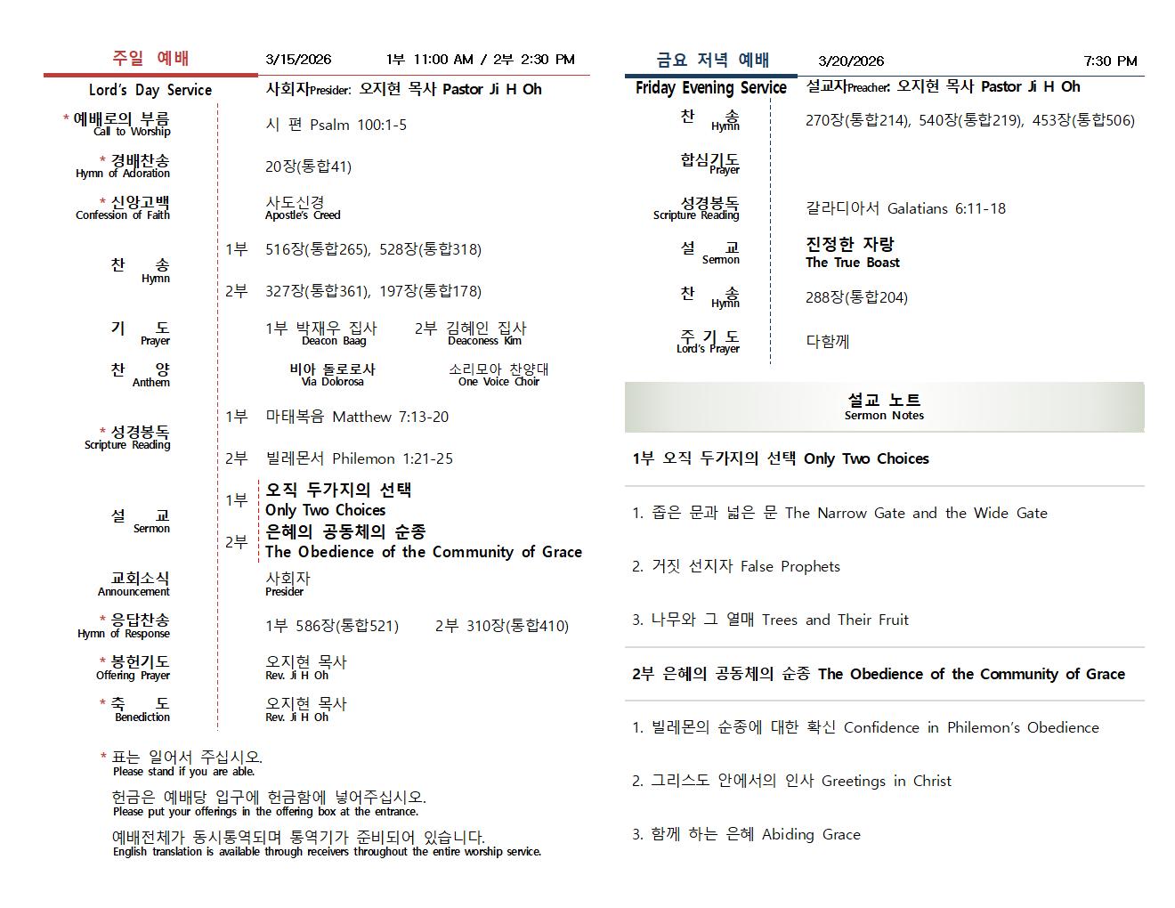 ÁÖÀÏ ¿¹¹è 2ºÎ ÁÖÀÏ ¿ÀÈÄ 2:30