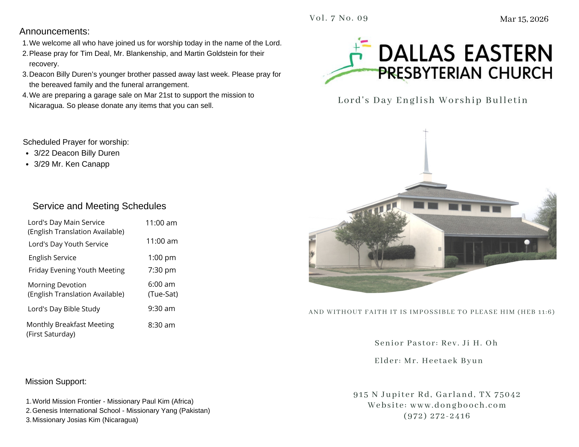 ÁÖÀÏ ¿¹¹è 1ºÎ ÁÖÀÏ ¿ÀÀü 11:00