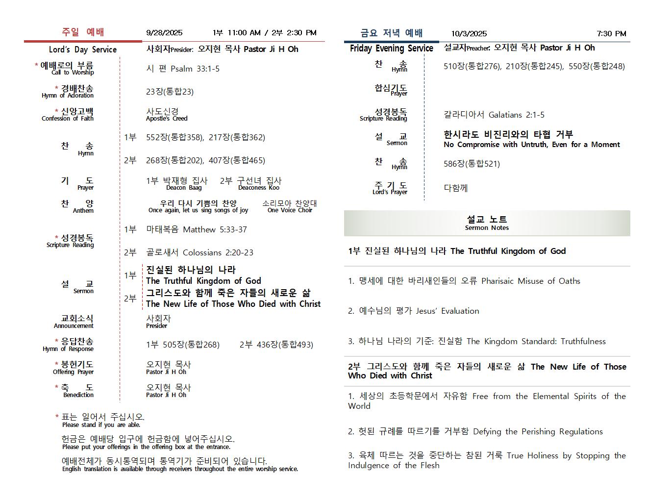 ÁÖÀÏ ¿¹¹è 2ºÎ ÁÖÀÏ ¿ÀÈÄ 2:30